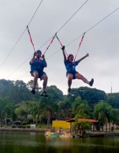 Quem não dispensa uma aventura pode viver uma experiência de tirar o fôlego com a tirolesa do parque aquático. O percurso de 400 metros oferece uma vista privilegiada das belezas naturais do Thermas da Mata e seus arredores.