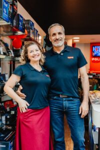 Os sócios Evânia e José Carlos Campos, o Zeca são fãs a Polishop e escolheram a Grana Viana para investir em uma loja linda, contam com um time de vendedoras engajadas, que conhecem tudo sobre os produtos e estão sempre prontas para atender os clientes. O casal que esbanja simpatia, espera sua visita.