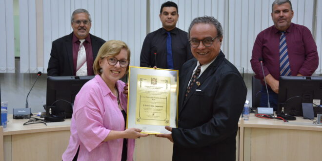 Na Sessão Ordinária da Câmara Municipal, realizada na última segunda-feira, dia 12, a Vereadora Dra. Cláudia Pedroso teve a grata satisfação de entregar o título de cidadão são-roquense ao Dr. Carlos Ap. Grisólia Cordeiro, conhecido popularmente como “Lilo”.