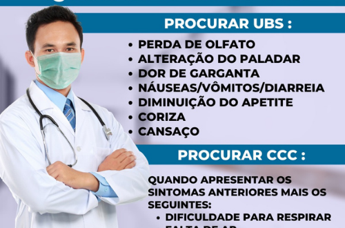 Por fim, a Secretaria Municipal de Saúde orienta que o munícipe que precisar ir, com acompanhante, até as UBSs ou ao CCC, que leve apenas um, para que não ocorram novas aglomerações.