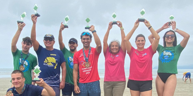No último domingo, 22, os atletas da equipe de Águas Abertas do Grêmio União Sanroquense se destacaram no CircuitoTH5, realizado em Bertioga-SP. A equipe mostrou sua força e determinação, conquistando várias medalhas em diferentes categorias.