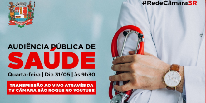 A Câmara Municipal da Estância Turística de São Roque concede no próximo dia 31 de maio (quarta-feira), às 9h30, Audiência Pública para apresentação à Comissão Permanente de Saúde e Assistência Social da Câmara, pelo Gestor do Sistema Único de Saúde (SUS), do relatório do 1º quadrimestre de 2023, com informações sobre a aplicação de recursos auditoriais, oferta e produção de serviços e indicadores da área de Saúde, para cumprimento ao estabelecido no art. 36 da Lei Complementar nº 141 de 2012.