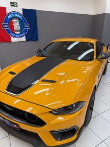 gratuita que reúne exposição de modelos do Ford Mustang, um encontro