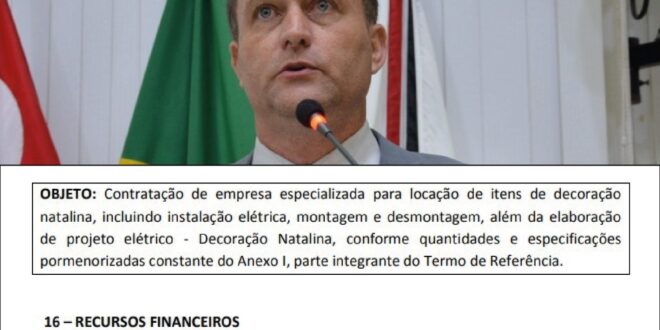 Na última Sessão da Câmara Municipal realizada na segunda-feira, 31 de outubro, o Vereador Cabo Jean utilizou a tribuna para manifestar o seu descontentamento com a atitude do Prefeito Guto Issa que permitirá o gasto equivalente a R$500 mil (meio milhão), para a locação de enfeites de Natal a serem colocados em alguns pontos do município, conforme estabelecido no item 16.1 do edital publicado.
