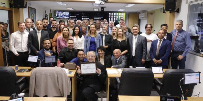 Nesta quinta-feira, 29/06 a Câmara Municipal de Osasco prestou homenagem à imprensa regional representada pela Associação Empresarial dos Órgãos de Imprensa da Grande São Paulo (Asemorig). O evento ocorreu com a Moção de Aplauso 224/2023 apresentada pelo vereador Michel Figueiredo.