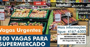 Leia mais »Estão abertas 100 vagas para trabalhar em Supermercado em Carapicuíba