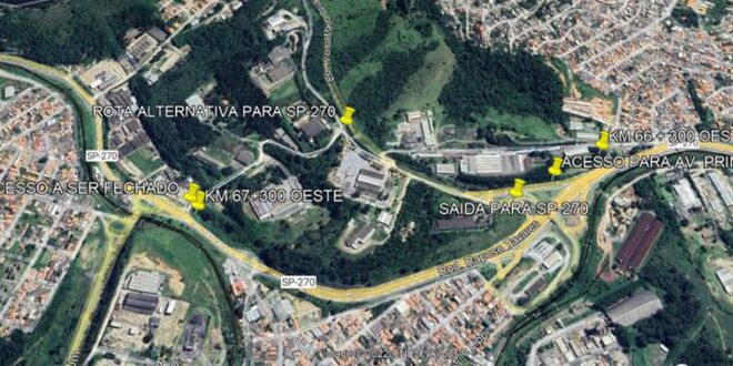Avenida Prink, em Mairinque, terá acesso bloqueado para execução de serviços na rotatória do km 67 da Raposo Tavares