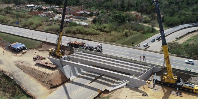 Operação envolvendo quatro guindastes foi realizada ontem (31/08) para movimentar cinco vigas que pesam cerca de 63 toneladas