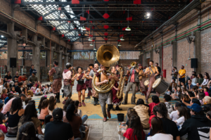 Dentro, Fora e Cruza – Com o Grupo Unity Warriors, a performance ressignifica brincadeiras populares, conectando memória e movimento em uma experiência vibrante.