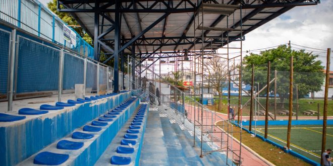Está na reta final a obra de implantação do novo complexo esportivo do Atalaia que está sendo implantado pela Prefeitura de Cotia. Nesta semana, a arquibancada começou a ganhar cobertura. O equipamento público que está sendo construído vai oferecer uma infraestrutura completa para prática de esporte que poderá ser utilizado por pessoas de todas as idades.