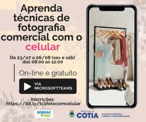 Entre as oportunidades trazidas para Cotia estão: Tecnicas para fotografia comercial com celular, Entenda melhor seu cliente e venda mais, Técnicas para a criação de uma loja virtual, Aprenda a vender melhor no e-commerce, Converta vendas utilizando Inbound Marketing e Técnicas para desenvolver seu comércio eletrônico.