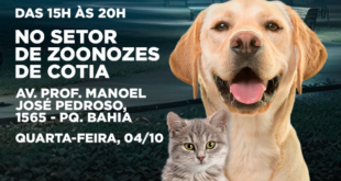 Na próxima quarta-feira (4/10/23), das 15h às 20h, acontece mais uma edição da vacinação antirrábica de rotina para cães e gatos. A vacinação acontecerá na sala de vacinas do Setor de Zoonoses, da Secretaria de Saúde de Cotia, no Parque Bahia, e o atendimento será por ordem de chegada até …