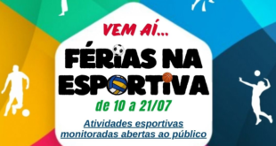 Entre os dias 10 e 21 de julho, a Secretaria de Esportes e Juventude de Cotia realiza mais uma edição do projeto ‘Férias na Esportiva’ no Ginásio de Esportes. Serão oferecidas diversas atividades esportivas gratuitas, monitoradas e para pessoas de todas as idades. A programação é aberta ao público e …