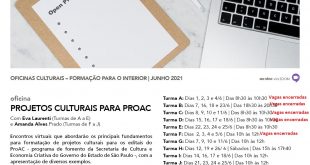 Oficina gratuita “Pensou, é Projeto!”, com Silvana Bárbara, abordará a gestão para autonomia e produção cultural com foco nos Editais Proac 2021 Foto: Divulgação Estão abertas as inscrições para a oficina gratuita exclusiva para artistas, agentes e produtores culturais, organizações culturais privadas e do terceiro setor da cidade de Cotia: …