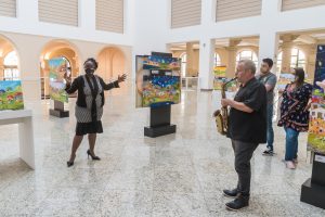 Ladeada por empresários – Ivo Farias, da Sincoplastic Embalagens Flexíveis, Mário Kamei, presidente da Associação Rua das Motos, Rosely Ferrante, da A Rainha, Mi Benassi, do Ateliê Benassi, jornalista Cosme Félix, da TV Tribuna Afro e Luca Pizarro da TV das Artes – Meire Lopes recebeu ainda a presença do Secretário de Cultura de Embu das Artes, Carlos Alberto da Silva, que visitaram e prestigiaram a mostra cultural que também contempla a divulgação das belezas naturais e do artesanato embuense.