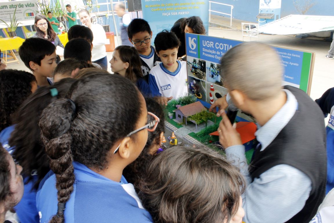 A programação foi idealizada pela Sabesp e contou com o apoio da Prefeitura. Alunos da EM Professora Otilia Freire S. Shimada também marcaram presença. Há poucos metros da Praça, os alunos da unidade escolar fizeram uma visita à exposição, aprenderam mais sobre reciclagem, sobre a importância da ligação correta de escoto, de água pluvial, sobre reutilização de materiais recicláveis em obras de arte e, de quebra, puderam trocar brinquedos em uma tenda especial. “Esta foi uma excelente oportunidade para as crianças exercitarem o reaproveitamento e a sustentabilidade, sem contar que a troca estimula a solidariedade”, disse Gustavo Gemente, titular de Meio Ambiente e Agropecuária.