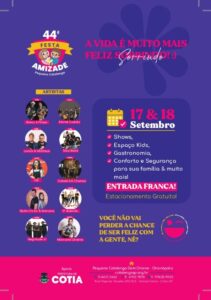 A “Festa da Amizade” é desenvolvida para cobrir os custos de final de ano, que naturalmente ficam maiores. O evento acontecerá nesse final de semana, nos dias 17 e 18 de Setembro, e serão dias de muita alegria com diversas barracas de comidas típicas, diversas bebidas e uma programação imperdível.