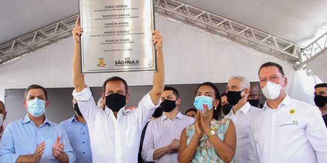 Em solenidade realizada na tarde da última terça-feira, dia 18, o prefeito Marcos Neves recebeu o governador João Dória para inaugurar o sistema viário do Jandaia. A obra de revitalização inclui ampliação das vias, que passaram a contar com três faixas em cada sentido, sinalização viária, calçada com acessibilidade, estacionamento e até equipamentos de ginástica, além de paisagismo e arborização. O objetivo é dinamizar o fluxo de veículos, tanto para os moradores do bairro e do entorno quanto para os trabalhadores que atuam no parque empresarial local.