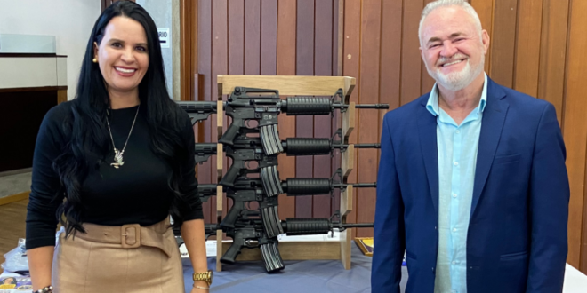 Durante a cerimônia foram entregues oficialmente quatro fuzis Taurus calibre 5.56, adquiridos com recursos destinados pela deputada Letícia Aguiar. “Este evento é um marco importante, em que comemoramos os 20 anos da GCM de Vargem Grande Paulista com um prefeito que sabe reconhecer a sua guarda com investimentos em equipamentos, viaturas, uniformes e, agora, armamentos que conseguimos para auxiliar o município. E para mim é muito satisfatório entregar este equipamento que vai fornecer mais segurança ao agente policial e à população local, pois aqui tem uma guarda municipal treinada e preparada que vai coibir qualquer tipo de crime”, enfatizou a parlamentar.