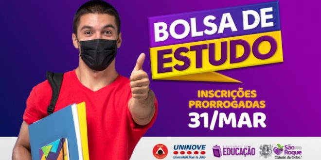 A Prefeitura de São Roque prorrogou para o dia 31 de março as inscrições para o processo seletivo de bolsas de estudos com 100% de gratuidade na Uni São Roque (Associação de Ensino Superior de São Roque) e UNINOVE (Associação Educacional Nove de Julho).