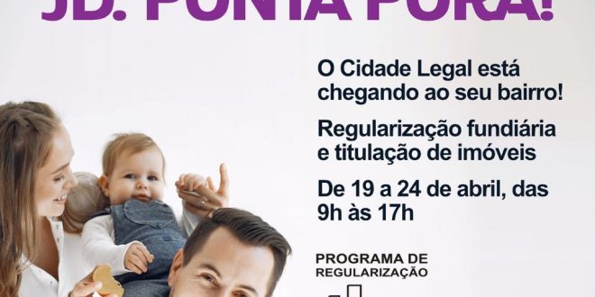 O Jardim Ponta Porã receberá nesta semana uma ação do Programa Cidade Legal, iniciativa do Governo do Estado que promove a regularização fundiária na cidade. Entre os dias 19 e 24 de abril, equipes estarão no bairro realizando cadastros e coleta de documentos, das 9h às 17h.