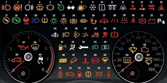– Alerta de pressão do óleo baixo (57) ou alerta de temperatura (48) – Ao verificar um destes símbolos ligado no painel, o motorista deve procurar um local seguro para estacionar, pois o carro pode sofrer um dano sério no motor, parar e provocar um grande prejuízo. O ideal é pedir um reboque e levar o veículo imediatamente a um mecânico.