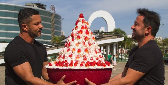 O Merengue de Morango Gigante deve render porções para cerca de uma centena de pessoas, mas vai ter muitas outras opções de doces preparados com a fruta que está em plena época de safra.