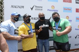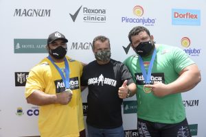 cangalha, com 570 kg em cinco metros, Tiago Aparecido, de Biritiba-Mirim (SP), comemorou a oportunidade de voltar à disputa do Força Bruta, após ter participado do evento em 2018. “Para mim é gratificante ser convidado. Sinal de que meu trabalho está sendo bem feito e reconhecido. Venho do Sul-Americano no domingo (31), quebrei um recorde e pude representar o Brasil entre os homens mais fortes do mundo. Honrado por estar aqui, após ter competido há três anos ao lado do meu amigo Marcos Ferrari, que desta vez foi árbitro do evento”, relembrou Aparecido.