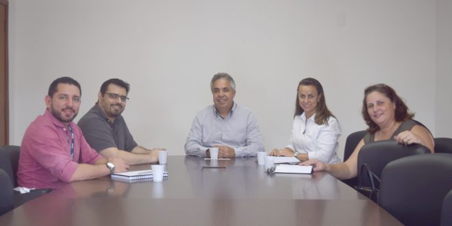 O gerente do Senac Sorocaba e Itu, Rodrigo Buzin Siqueira do Amaral e o Executivo de contas da entidade, Felipe Eduardo da Silva Zanardo, estiveram reunidos na sexta-feira (02), com o prefeito Claudio Góes e a primeira dama e presidente do Fundo Social de Solidariedade, Mazé Barros.