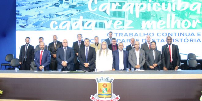 Em cerimônia realizada no Ginásio Ayrton Senna, seguindo todos os protocolos de segurança e distanciamento social, tomaram posse, na última sexta-feira (1) o prefeito Marcos Neves (PSDB) e os 17 vereadores eleitos para a 14ª Legislatura de Carapicuíba. A solenidade, que foi transmitida ao vivo pela internet, também foi acompanhada da votação que deu mais um mandato de presidente da Câmara Municipal ao vereador Guto (Pode).