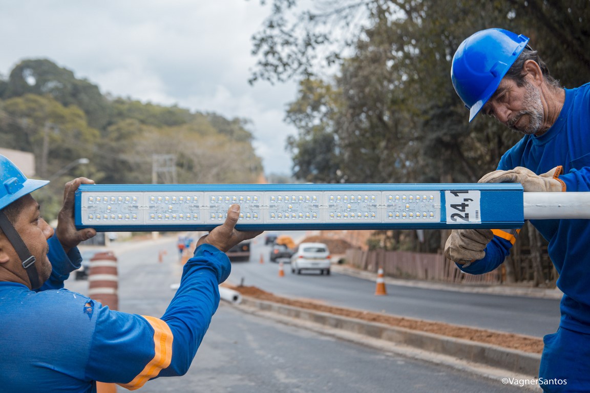 Os novos postes estão sendo colocados no canteiro central – criado pela Prefeitura e que será implantado nos cerca de 12km de extensão da estrada. A fiação é subterrânea e as luminárias contam com lâmpadas LED. “Este é o novo modelo de iluminação pública que estamos levando para dezenas de bairros. Estamos acompanhando de perto o trabalho que vem sendo executado na Estrada de Caucaia, pois será um divisor de águas para o progresso do distrito”, disse o prefeito Rogério Franco.