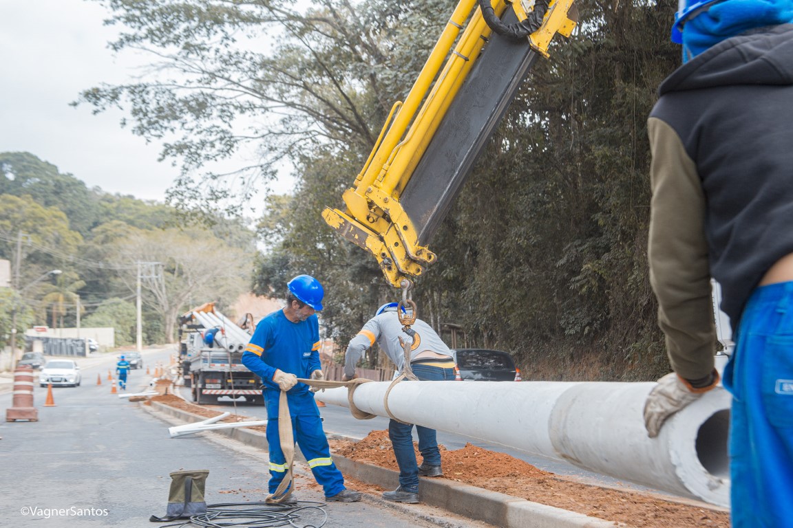 Nesta semana, quem passou pela Estrada de Caucaia do Alto, principal porta de entrada ao distrito de Cotia, pôde conferir equipes instalando novos postes em mais um trecho da via. O trabalho faz parte do projeto de revitalização e duplicação de toda a estrada, orçado em cerca de R$ 60 milhões e que consta no pacote com mais de 200 ações que serão entregues para a população pela administração municipal.