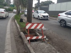 Na região da Granja Viana, está em andamento a reforma das caixas de captação de águas pluviais na Estrada Velha de Sorocaba.
