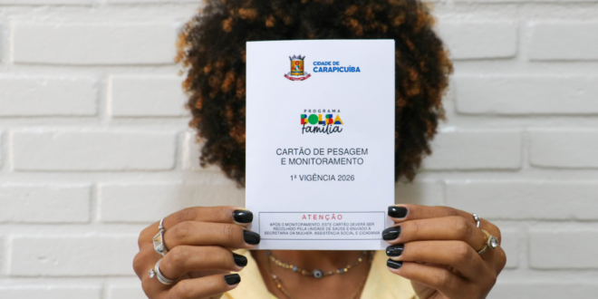 A Prefeitura de Carapicuíba, por meio da Secretaria da Mulher, Assistência Social e Cidadania, inicia a partir de quarta-feira, 22 de abril até 12 de junho, o período de retirada do Cartão de Pesagem e Monitoramento da 1ª vigência de 2026, para famílias beneficiárias do Bolsa Família que incluam mulheres de 14 a 44 anos e/ou crianças menores de 7 anos.
