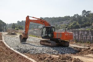Está em andamento a execução da base do pavimento da rua Toureiros, no Parque Miguel Mirizola, para aplicação da massa asfáltica. A base está sendo preparada com rachão e bica corrida. A via também recebeu infraestrutura de guias, sarjetas e galerias. A massa asfáltica começará a ser aplicada nos próximos dias.