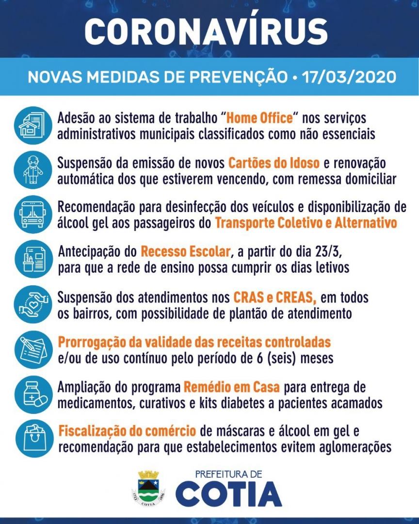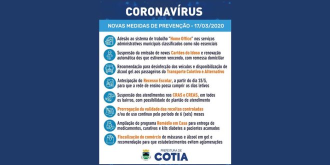 “Estas medidas são necessárias para protegermos a população, é preciso que haja compreensão e o apoio de todos neste momento de isolamento social tão importante para proteger a nossa família deste novo Coronavírus e tão logo podermos voltar à normalidade de nossas atividades”, disse o prefeito Rogério Franco.