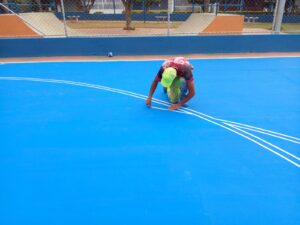 A quadra recebeu alguns reparos em pontos que apresentavam avarias, uma nova tinta de fundo já foi aplicada e, nesta quinta-feira (25/08), a equipe iniciou a demarcação da quadra para pintura de acordo com a modalidade esportiva (futsal, vôlei, handebol, basquete). A área de lazer do Jardim Cláudio conta ainda com playground, academia ao ar livre, pista de skate, quiosque, sanitários e bebedouros.