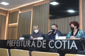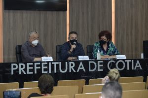 O prefeito Rogério Franco junto à vice-prefeita, Ângela Maluf, e o presidente da Câmara Municipal de Cotia, Celso Itiki, realizaram uma coletiva de imprensa para sanar dúvidas e apontar futuros possíveis para projetos que tramitam na Prefeitura da cidade. Jornalistas da região levantaram questionamentos e obtiveram retorno dos personagens do dia.