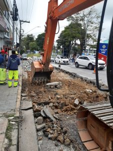 Em outro ponto da região central, as equipes passaram pela rua Senador Feijó. O local havia sido pavimentado, recentemente, mas precisou passar por fresagem devido à implantação de uma rede de esgoto da Sabesp que danificou o pavimento. O reparo no asfalto ficou a cargo da própria concessionária.