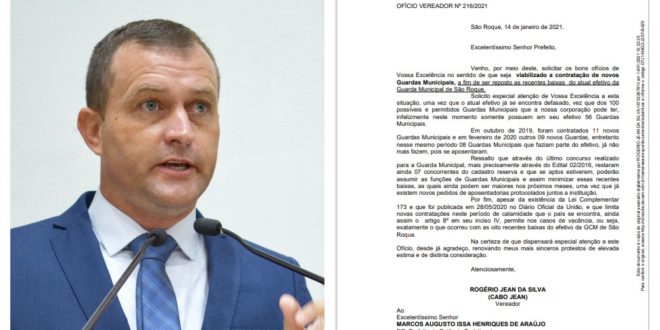 Após solicitação do Vereador Cabo Jean, realizada através do Ofício nº 216/2021, protocolado na Casa de Leis em 14/01/2021, o Poder Executivo enviou para votação na Câmara Municipal o Projeto de Lei nº 042/2021-E, que cria no orçamento vigente recursos para a contratação de sete novos Guardas Municipais aprovados no Concurso Público nº 02/2016.