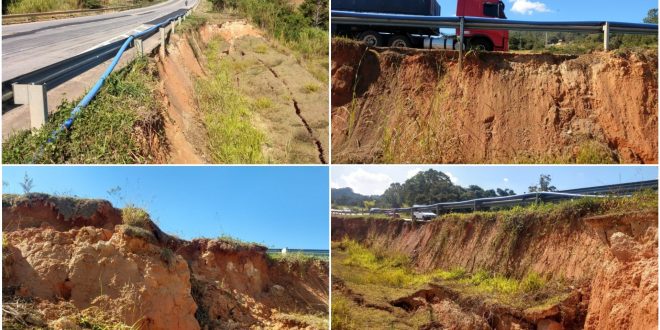 “A erosão já está no limite do asfalto da rodovia e, se não for contida, a rodovia pode desabar naquele trecho onde centenas de veículos transitam diariamente, colocando em risco a vida de muitas pessoas. Por isso faço um apelo junto aos responsáveis diretos para que providenciem com urgência a manutenção do referido talude, e peço atenção e cuidado aos motoristas ao passarem pelo trecho próximo ao radar, no quilômetro 7,5, principalmente aos que chegam em São Roque”, alerta o vereador Cabo Jean.