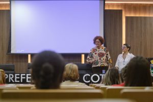 A vice-prefeita e titular dos Direitos Humanos, Cidadania e da Mulher, Ângela Maluf, fez a abertura da aula e deu as boas-vindas aos colaboradores da Prefeitura. “Estou muito feliz com esta parceria com a FAEM. Nós, servidores públicos, temos uma clientela de mais de 250 mil cotianos para atender. Pessoas que nos procuram com suas demandas. Nós temos que acolher, ouvir, atender da melhor forma e encaminhar, quando necessário, para outras áreas do serviço público, sempre buscando encurtar distâncias para o munícipe. Por isso temos que estar preparados”, disse Ângela”, disse Ângela.