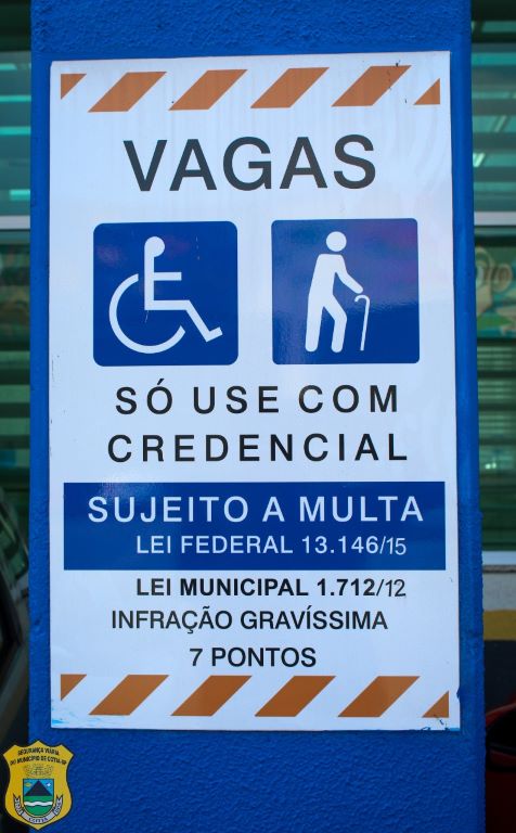 As penalidades aplicadas pelo uso indevido destas vagas de estacionamento estão previstas na Lei Federal 13.146/2015 e na Lei Municipal 1712/2012. O cartão especial de estacionamento é emitido gratuitamente pela Settrans e tem validade em todo o território nacional. Mais informações pelo telefone 4703-2617.
