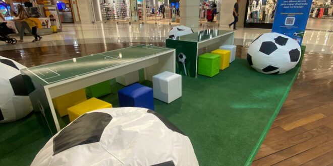 O Shopping Granja Vianna é o endereço dos apaixonados por futebol nos próximos meses. A Copa do Mundo chega mais cedo ao shopping center, que traz um ambiente especial para colecionadores trocarem figurinhas do álbum do torneio, conhecerem as camisetas oficiais de mais de 15 países e ainda conversarem sobre os jogadores, técnicos e expectativas para os jogos.