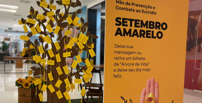 O Shopping Granja Vianna abraça o Setembro Amarelo, mês dedicado à conscientização e prevenção ao suicídio, apresentando a Árvore da Vida. Durante todo o mês, os visitantes do shopping center podem participar dessa iniciativa especial, escrevendo e visualizando mensagens de positividade e otimismo em cartões pendurados nos galhos de uma árvore simbólica.