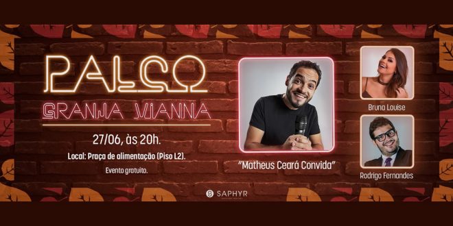 Cotia, 24 de junho de 2019 – O Shopping Granja Vianna traz os humoristas Bruna Louise e Rodrigo Fernandes para uma apresentação especial de stand up comedy no Palco Granja Vianna deste mês. Junto com o anfitrião do evento, Matheus Ceará, o trio promete proporcionar muitas gargalhas para quem procura mais diversão.