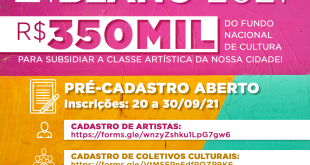 O Edital 02/2021 Aldir Blanc tem por finalidade fomentar e incentivar a produção cultural no município de Jandira, neste momento de pandemia da Covid19. Desta forma ampliar as atividades artísticas em 10 segmentos diferentes (dança, música, teatro, artes visuais, audiovisual, literatura, fotografia, cultura popular, artesanato e cultura LGBTQIA+). Foto: Divulgação …