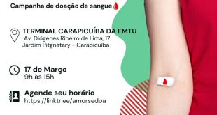 Ação organizada pelo Projeto Amor Se Doa acontecerá no dia 17/03; voluntários devem se inscrever para agendar horário Foto: Divulgação A EMTU-Empresa Metropolitana de Transportes Urbanos de São Paulo e o projeto Amor se Doa, em parceria com a Prefeitura de Carapicuíba, realizarão na próxima quinta-feira (17/03) a campanha “Amorsedoa …