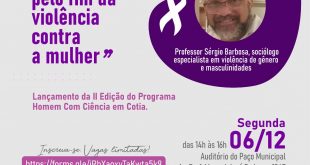 Foto: Divulgação A Prefeitura de Cotia, por meio da Secretaria de Direitos Humanos, Cidadania e da Mulher, escolheu uma data emblemática e com forte simbologia na luta contra a violência contra a mulher para lançar a 2ª edição do Programa ‘Homem com Ciência’: 6 de dezembro (alusão à Campanha Laço …