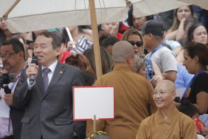 Com um público recorde de quase 17 mil pessoas – de todas as partes do Brasil e do mundo, praticantes do budismo ou não –, o evento contou com oficinas de origami e caligrafia chinesa, barracas de comidas típicas, além da Cerimônia dos Mil Budas – apresentada pela abadessa Miao Yen, maior autoridade budista latino-americana – e as aguardadas danças do Leão e do Dragão. Houve ainda apresentações de taiko – os tradicionais tambores -, coral e dança. Considerada um dos pontos altos da celebração, a Dança do Leão foi representada por dois leões que, ao final da apresentação, subiram um em cima do outro, unindo forças para alcançar os pés de alface, que representam prosperidade. A surpresa maior foi quando as máscaras caíram. O público esperava por homens, no entanto, as mulheres foram as grandes estrelas do show – mostrando que força independe de gênero. A dança do dragão encerrou as apresentações, com um espetáculo muito bonito e simbólico – o dragão representa a energia do fogo, que queima o velho e dá espaço para que venha o novo.